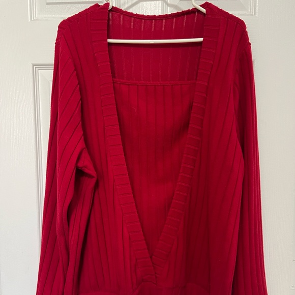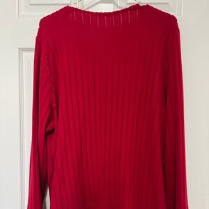 Stay cozy and stylish with this vibrant red V-neck ribbed sweater. Perfect for any occasion. Great condition - no signs of wear. Runs big
