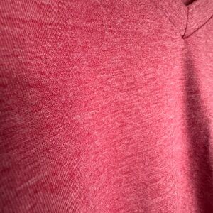 Stylish red V-neck top with a ruffle hem. Perfect for casual wear.
