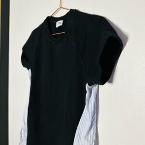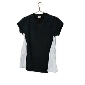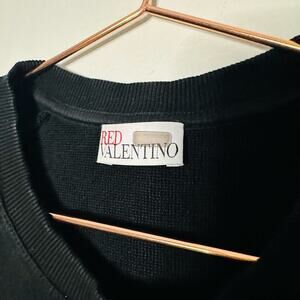 Red Valentino Black Short Sleeve Pinstripe Accent Side Crewneck Shirt Size Large
