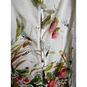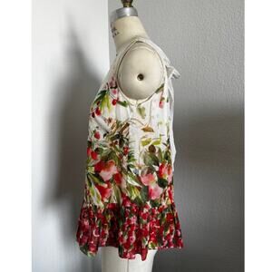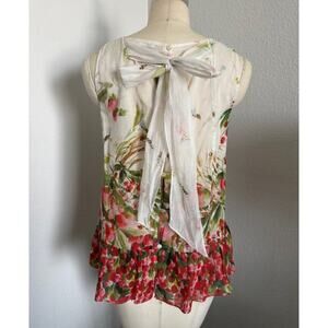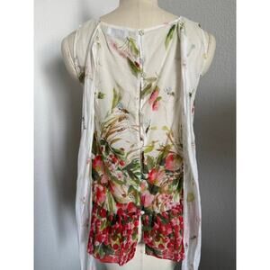 Beautiful garden print tunic top with tie at back and button detail. It is a bit sheer and goes well with a camisole underneath.