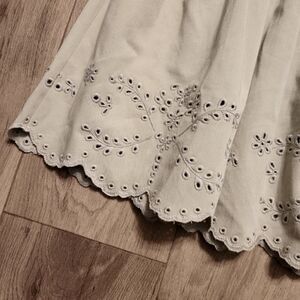 Great preloved condition. Lace Alike bottom and hem. Wide waist band. Side zipper closure. Flounce or flowy style skirt. 98% Cotton and 2% Spandex. Waist measurements laying flat is 15 inches. Length is 17.5 inches. Pls see pictures for details..Thank you