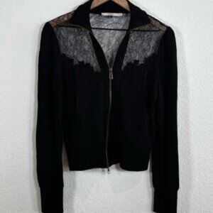 RED Valentino Women’s Black Lace Detail Zip-Up Jacket Size 44 (US 8/10)