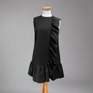An elegant dress for your next special event, this style from Red Valentino is a charmer. A structural shift silhouette is enhanced with a ruffle down the front and a deep ruffled hem. Made of a polyester blend, this fabric has a grosgrain finish and is fairly substantial and will keep its shape all evening. Zippered back. In excellent, like-new condition. Italian size 40. I am a top-rated seller and ship quickly!