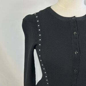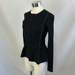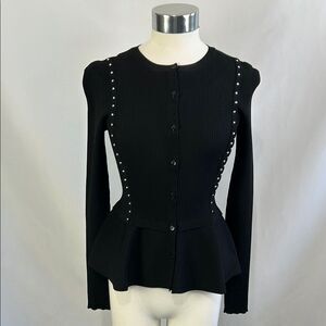Red Valentino Black Ribbed With Studs/Peplum Cardigan