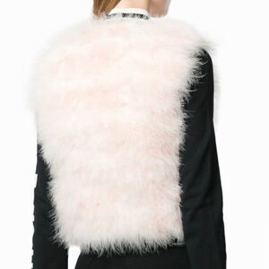 Light beige turkey feather vest from RED Valentino featuring a collarless design, a hook fastening and a cropped length.