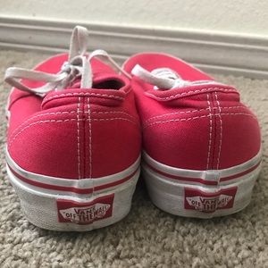 Gently used red, authentic style, Vans. A few scuffs but nothing serious.