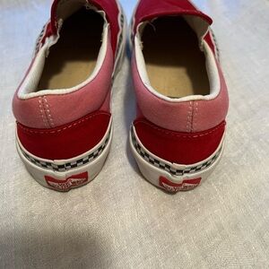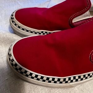 Red Vans with checkered print platforms. Mens size 5.5 or woman’s 7. Great shape