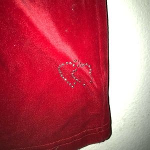 Red Velour Women's Sweatpants 2000s US Size XS-S Y2K Rhinestones Heart Sweats