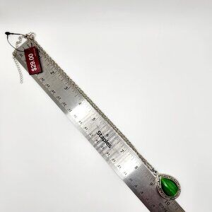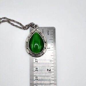 Lovely and bold necklace has a large faux green cats eye pendant.