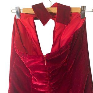 Red Velvet Halter Merlot Evening Mermaid Gown Keyhole Neckline Vampire New Years