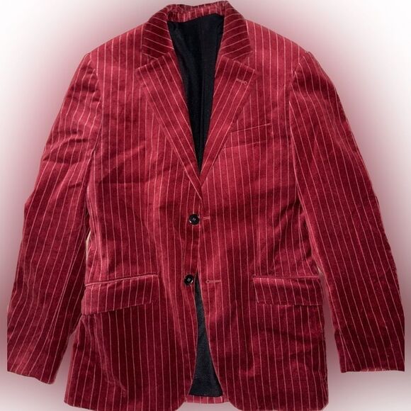Red Velvet Pinstripes custom blazer with tasteful crown lining