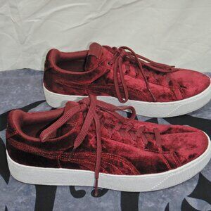Red Velvet Puma Platform Sneakers. Size 10M. Very minimal wear. Deep red/burgundy wine velvet. Memory foam insoles.