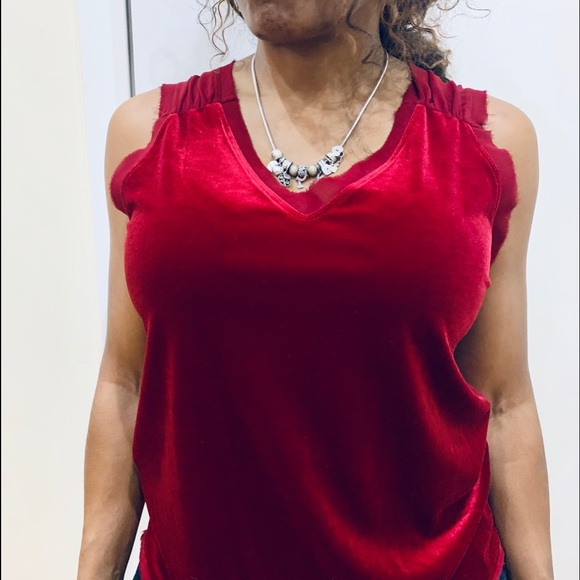 Velvet Red Racer Sheer Mesh Back Top