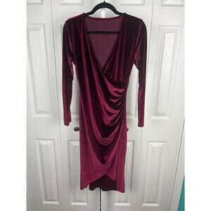 Red Velvet Ruched Holiday Cocktail Party Long Sleeve Knee Length Dress Small