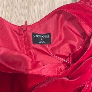 Charming red velvet dress with ruffle details. Perfect for special occasions.
