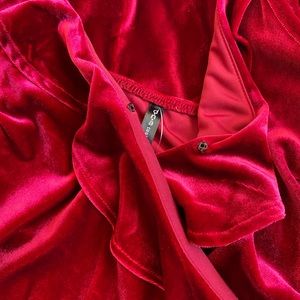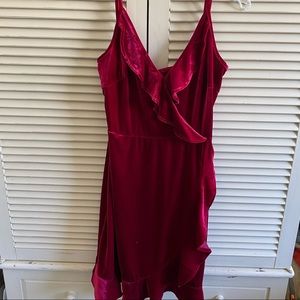 Red Velvet v neck Ruffle Mini Dress. Spaghetti strap dress perfect for going out or a special occasion. NWT. Small button closure on the front. Perfect holiday dress or Valentine’s Day dress! Bundle to save 😊 date night dress