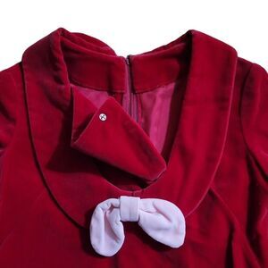 Red Velvet Scoop Neck Holiday Party Dress Retro Style Handmade Frock Girl SZ L