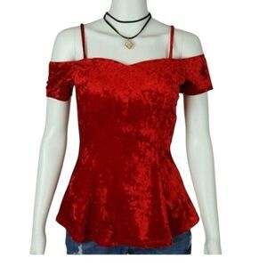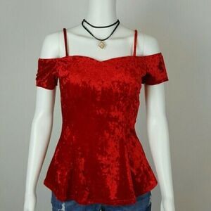 Red Velvet Top Cold Shoulder With Shocker