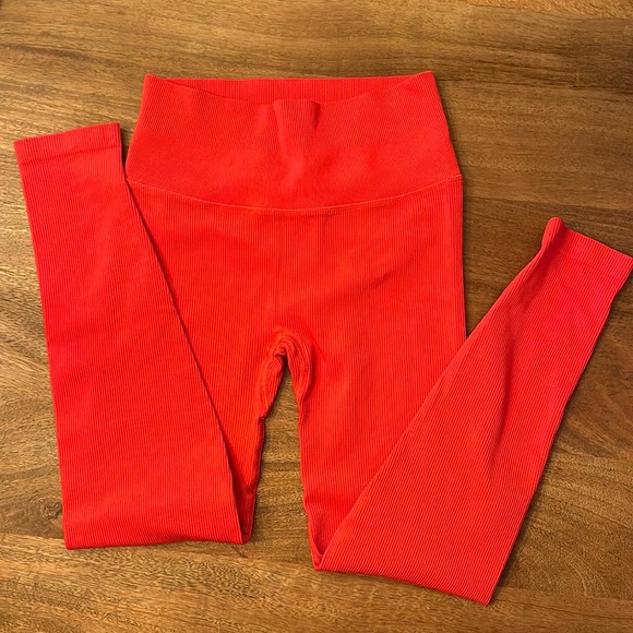 Red ribbed set. Size medium top. Small bottoms.