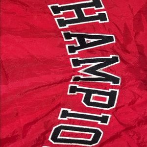 Red Vintage Champion Crew Neck!! Inside is pretty soft, it has a draw string around the edge, and pockets with zippers !! Its in vintage condition but no concerning problems!!