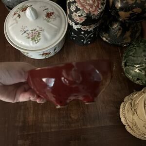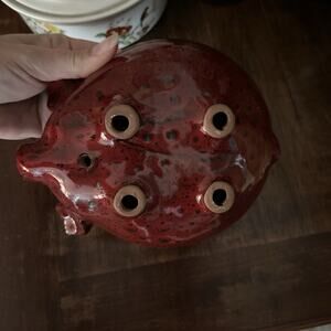 Red Vintage Red Clay Pottery Footed Pig Bowel