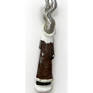The Red Vintage Santa Belsnickle German Style is an 18-inch tall, silver tone Santa figure perfect for Christmas decor. Made of with a distressed silver stone finish, making it a great addition to any holiday display. The vintage style and German Belsnickle subject add a unique touch to this collectible piece, ideal for collectors of Santa-themed figurines. Such a great piece.