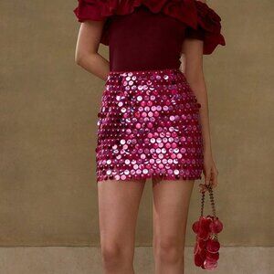 Red Violet Elegant Women's Sequins Zipper Side Skirt