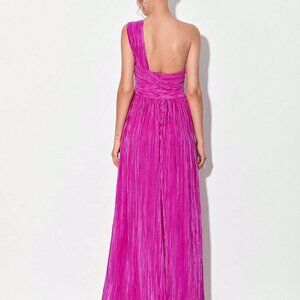 Red Violet Sexy Women's One Shoulder Ring Ruched Front Cut Out Split Thigh Dress