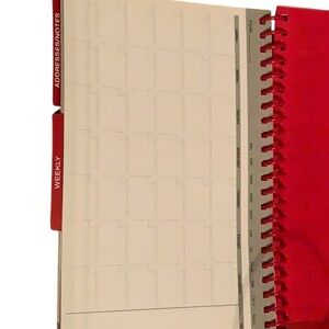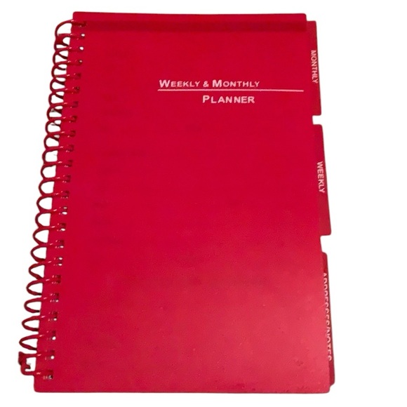 Stay organized with this vibrant red weekly and monthly planner. Perfect for managing your schedule efficiently.