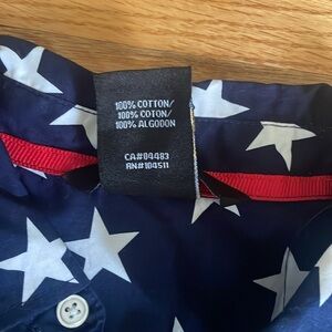 Red White Blue American Flag Stars Stripes Patriotic Short Sleeve Button Shirt M