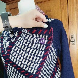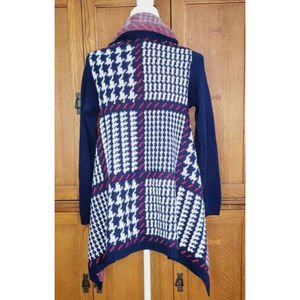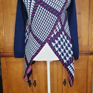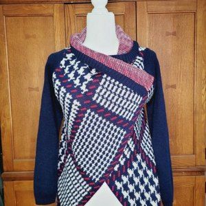 Red, White, & Blue Mixed Pattern Wrap Knit Sweater Cardigan. Size XS/S