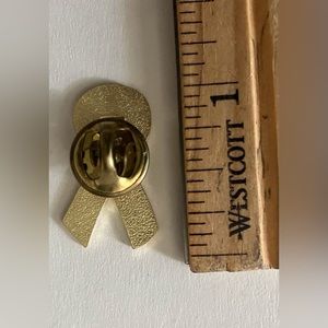 Stylish ribbon pin with red, white, and blue colors. Perfect for adding a patriotic touch.