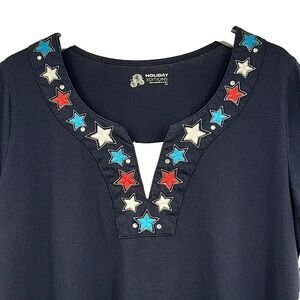Red White Blue Stars Womens Top Size 1X Patriotic T-Shirt Holiday Editions