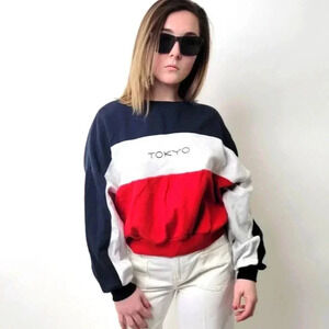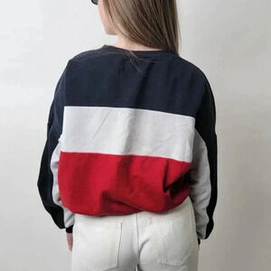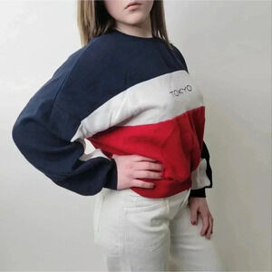 Red White & Blue Striped Colorblock 'Tokyo' Crewneck Pullover Sweatshirt - M