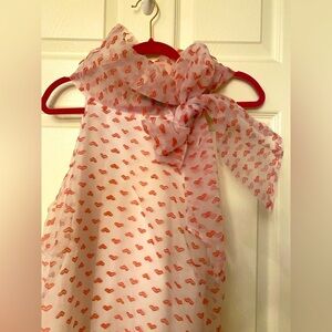 Red & White Chiffon 💋 Lips Sleeveless Blouse w/Side Collar Bow, EUC