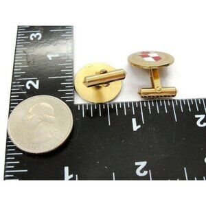 Red White Enamel Checkered Crest 1/20 12Kt Yellow Gold Filled Cufflinks Round