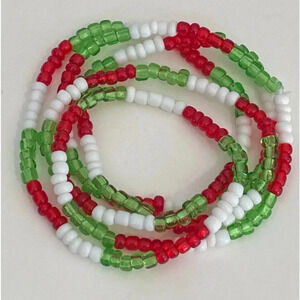 Red White Green Christmas Holiday Handmade Large Seed Bead Bracelet Necklace