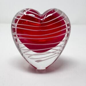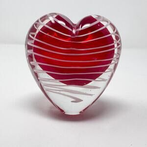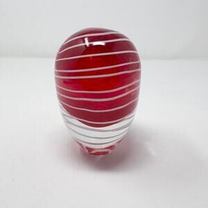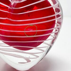 Red White Heart Shaped Swirled Hand Blown Glass Bud Vase Paperweight Art Glass