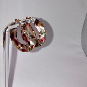 Red White Mosaic Resin Hoop 1 5/8" Earrings!