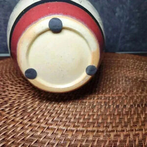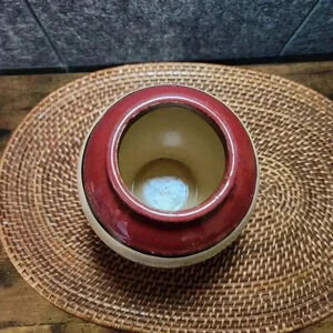 Red White Pottery Crackle Finish Flower Lotus Vase Statue 9"H x 4"W