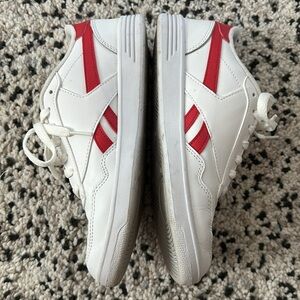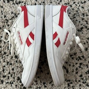 Red and white Reeboks - excellent used condition - mens 6 / womens 7.5 - some minor markings - discoloration around ankles and tongue
