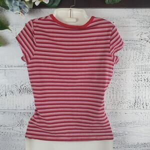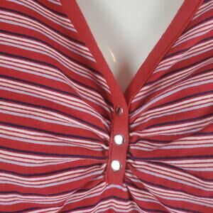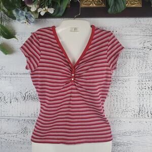 Red White Striped Cinched V-Neck Tee Shirt Women’s Sz 4-6 Y2K Fitted Mini Top