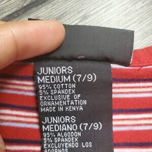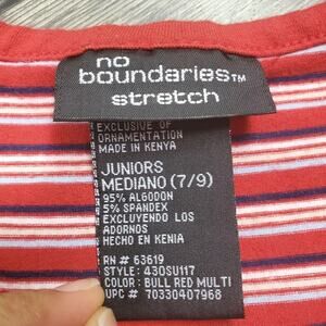 No Boundaries Stretch Red White Striped Cinched V-Neck Tee Shirt Women’s Size 4-6 Y2K Fitted Mini Top