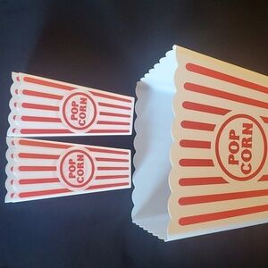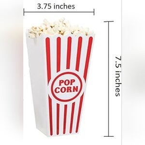 Red & White Striped Reusable Plastic Popcorn Containers-Set of 5