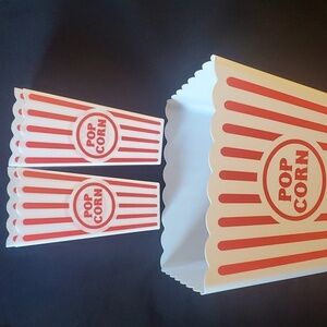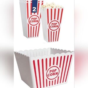 Red & White Striped Reusable Plastic Popcorn Containers-Set of 5