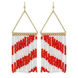 Red White Striped Seed Beaded Gold Dipped Boho Style Hook Earrings