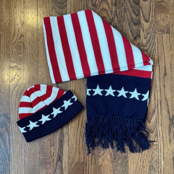 Red, White, and Blue Scarf and Hat Set