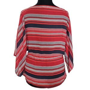 Red White and Blue Striped Top Medium Drawstring Cinched Waist