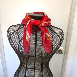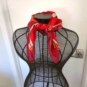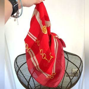 Red White and Gold Chain Print Square Scarf Wrap in great condition would look great as neck scarf or head wrap
