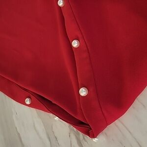 Red Wide Leg Pearl Pants